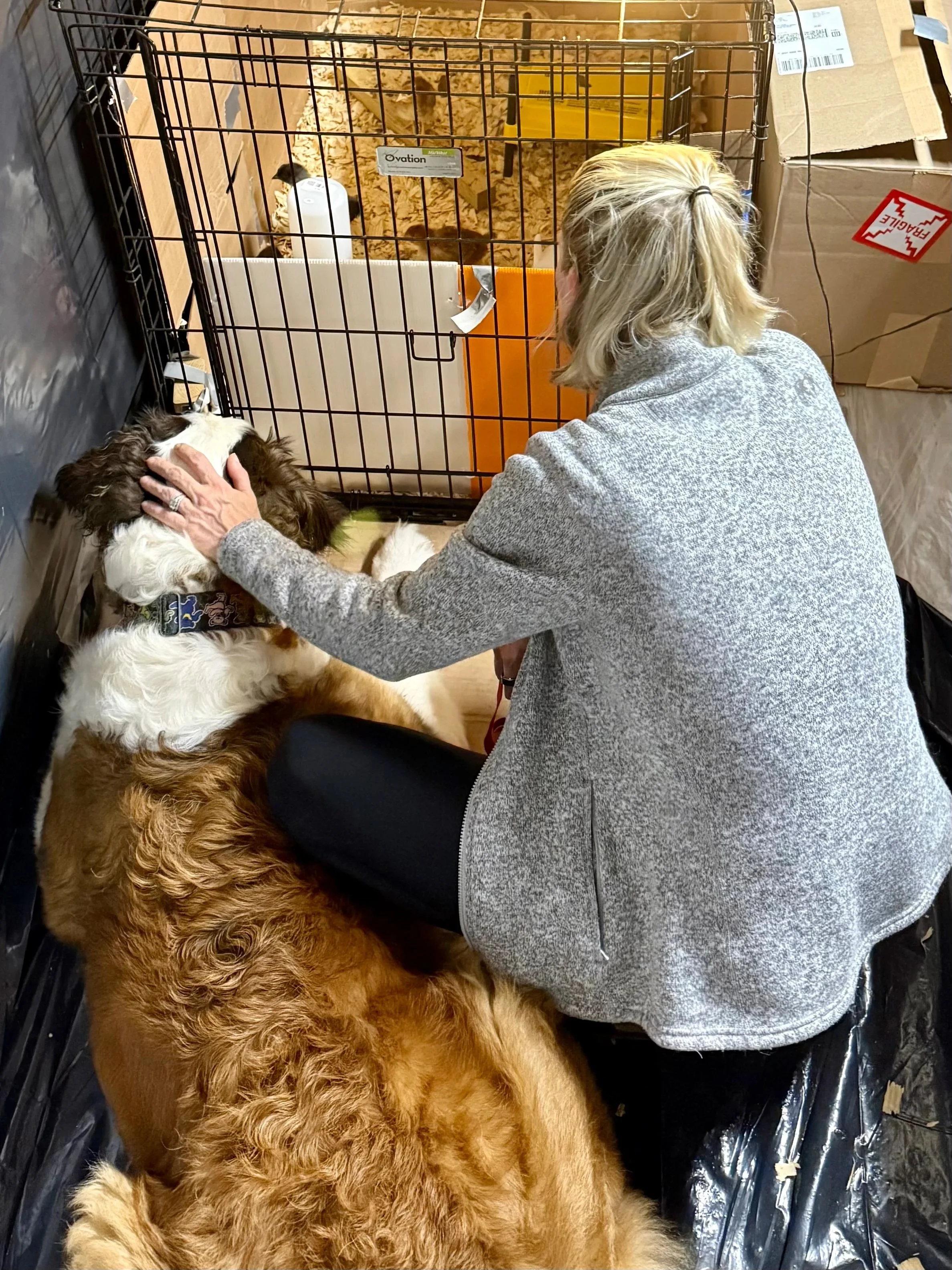 Right now, they are in a dog crate in our basement. In about three weeks, once their feathers have filled in, they will graduate to the outdoor coop with the OGs.