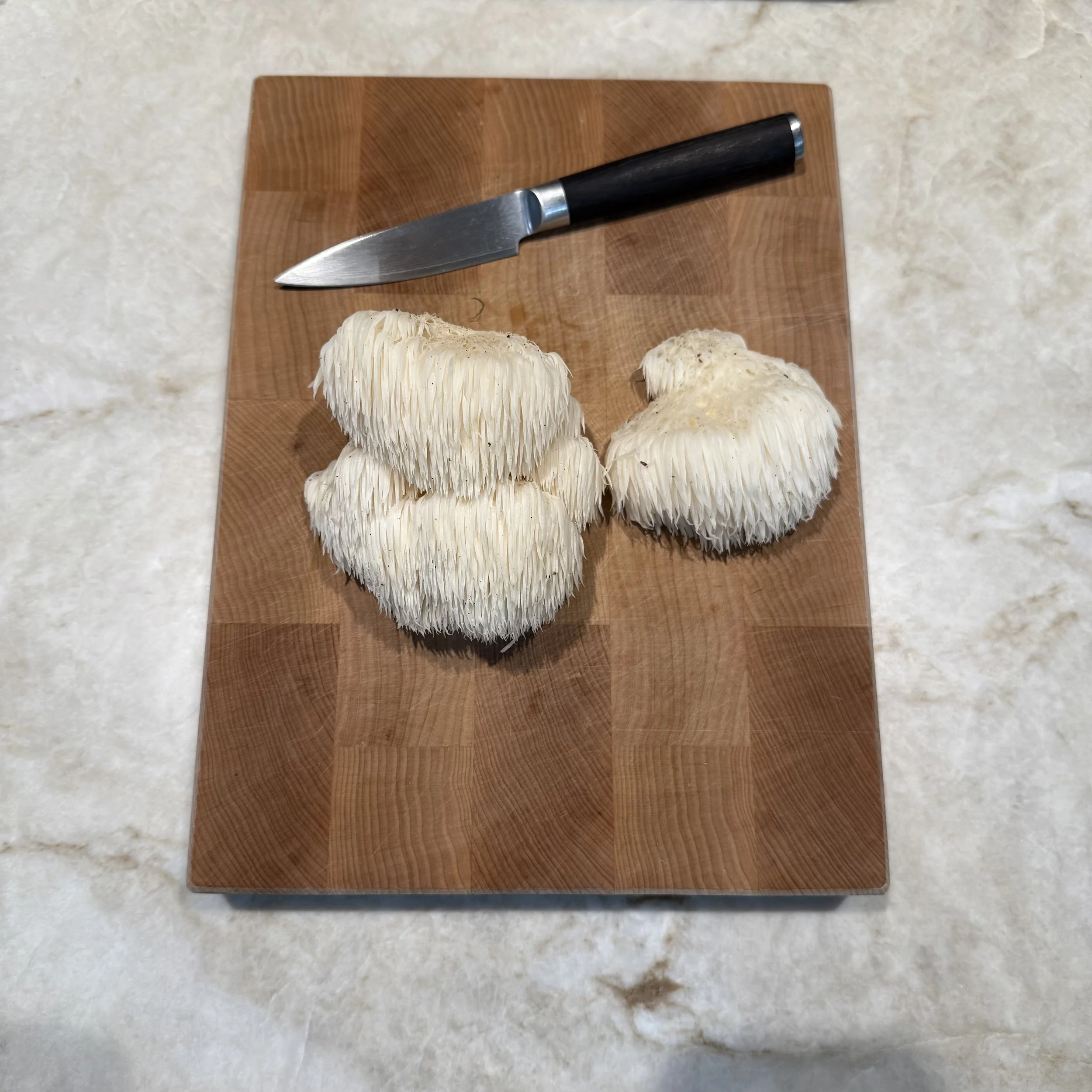 Finally, they’re a delicious culinary head fake. You take a bite of lion’s mane expecting an earthy, meaty, of-the-forest mushroom experience, but instead you get a firm, slightly briny taste with a fibrous mouthfeel and clean finish. Very similar to lobster or crab.